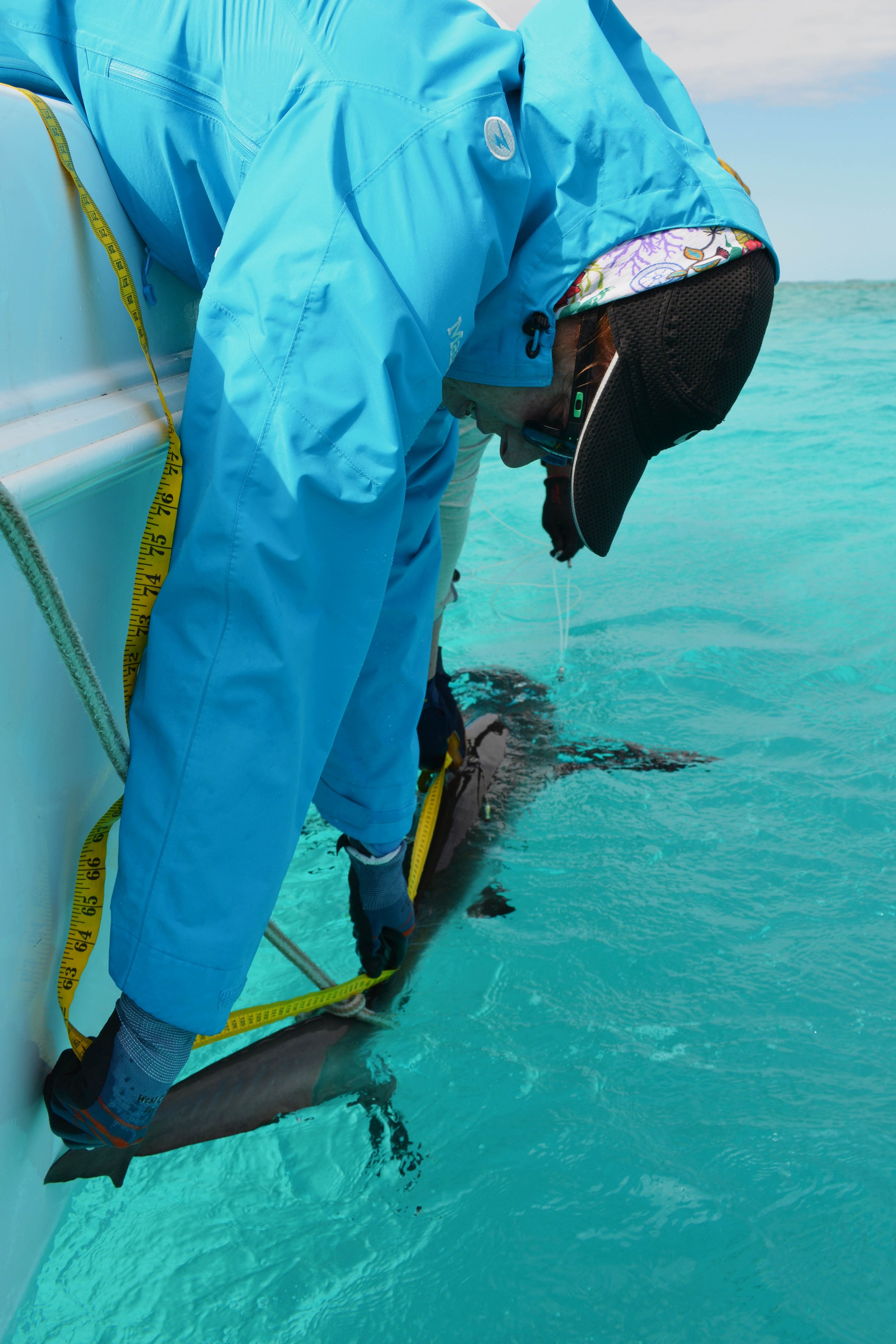 Next came a Caribbean reef shark, who was a little more frisky when brought to the boat. The chip scanner (PIT tag reader) told us she was a recapture, which is always incredibly exciting! Next up came another nurse shark. With the three sharks we all got an opportunity to rotate through the different roles involved in capture, data gathering and tagging.