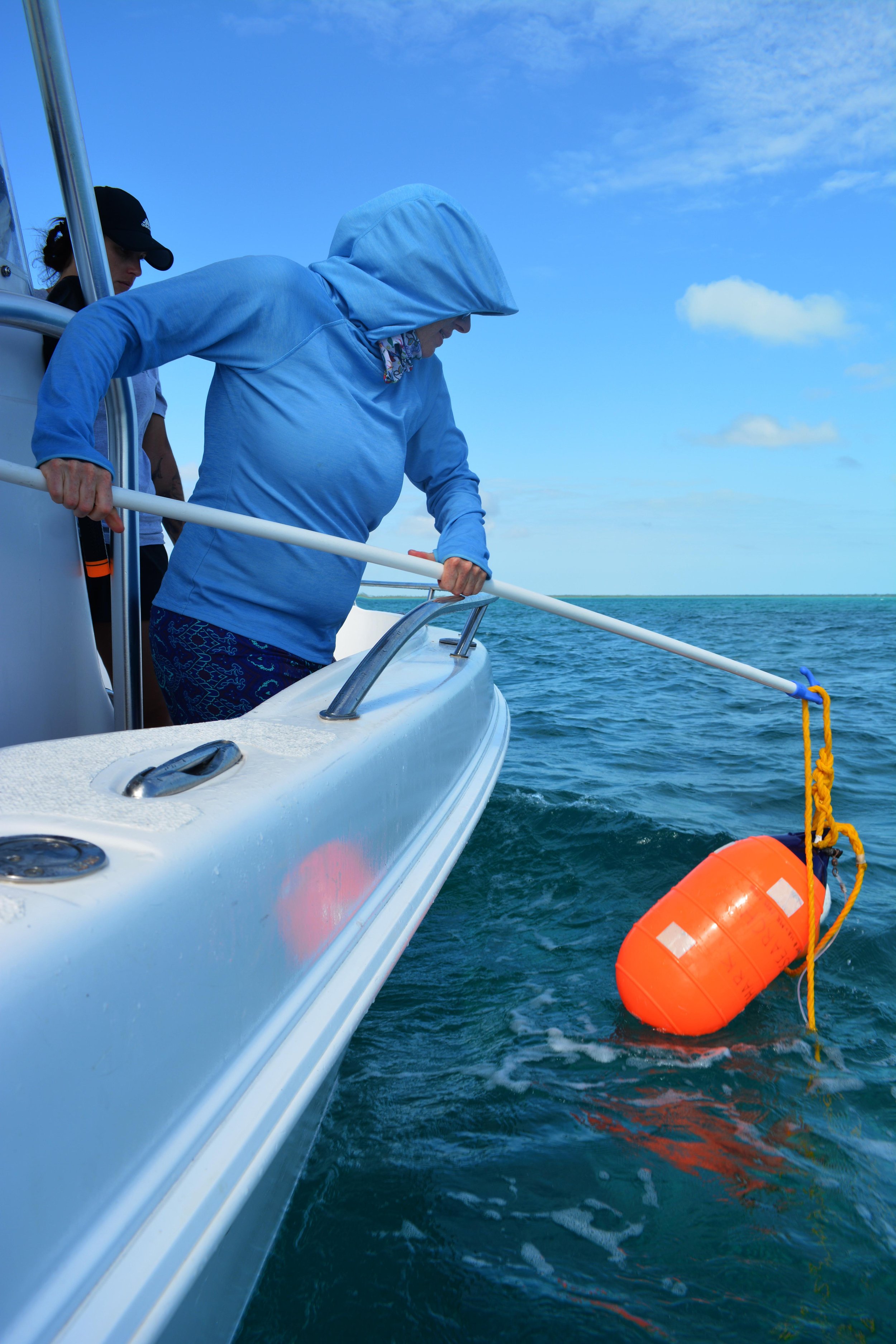 The next morning we were back up and at it again, this time heading for a different area known for its sharky waters. However, past performance is not always an indicator of future success, and it was a bit of a slow day. We did capture and tag two nurse sharks and a blacktip. Worth noting, however, was the one that got away. After hours of watching the buoys without much action, we were becoming slightly hypnotized by the gentle bobbing of our boat and of our buoys in the distance.